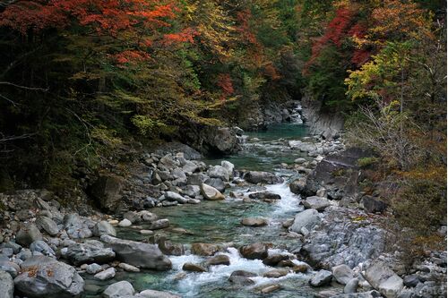 α7RII / FE 55mm F1.8 ZA / 長野県 木曽郡 / 大桑村 / 阿寺渓谷遊歩道 / 2020.11.1 今日は阿寺渓谷シリーズ最終回・・前回の『 うなり島 』でまったり阿寺ブルーを堪能しているうちに、陽も暮始めていた・・ 辺りも薄暗くなって来たし、後は来た道を分岐まで…